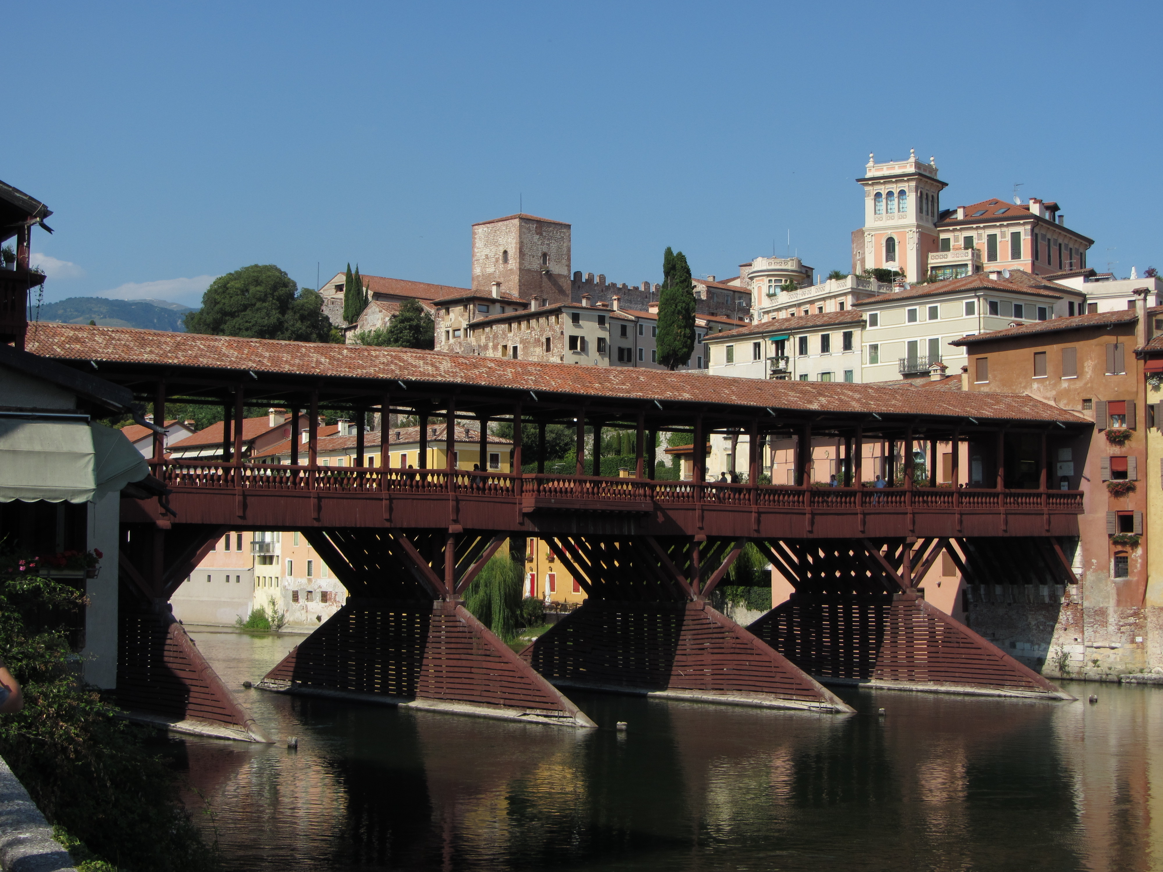 En arrivant à Bassano del Grappa, nos premières villas palladiennes font leur apparitions. Bassano del Grappa (jumelée ave Voiron) se révèle une petite ville bien agréable (notamment pour la pause glace !), avec son Ponte degli Alpini en bois couvert.