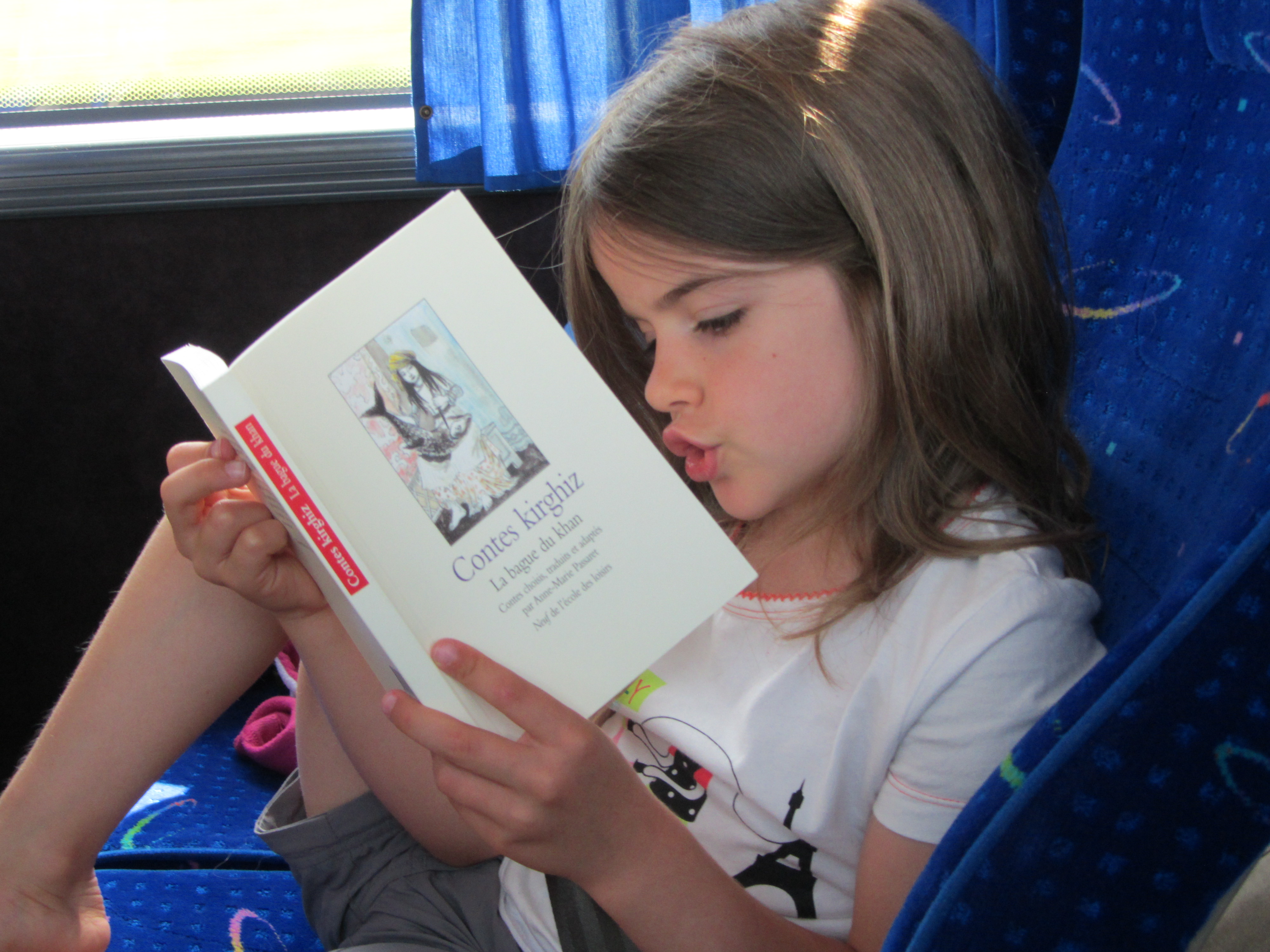 o « Contes Kirghiz – La bague du khan », Anne-Marie Passeret, Neuf de l’école des loisirs » : un petit livre qui parle de yourtes, de chevaux, de steppes, bref tout ce que les enfants ont côtoyé durant un mois, donc un très grand intérêt de leur part pour ce livre, lu et relu tout au long du voyage.